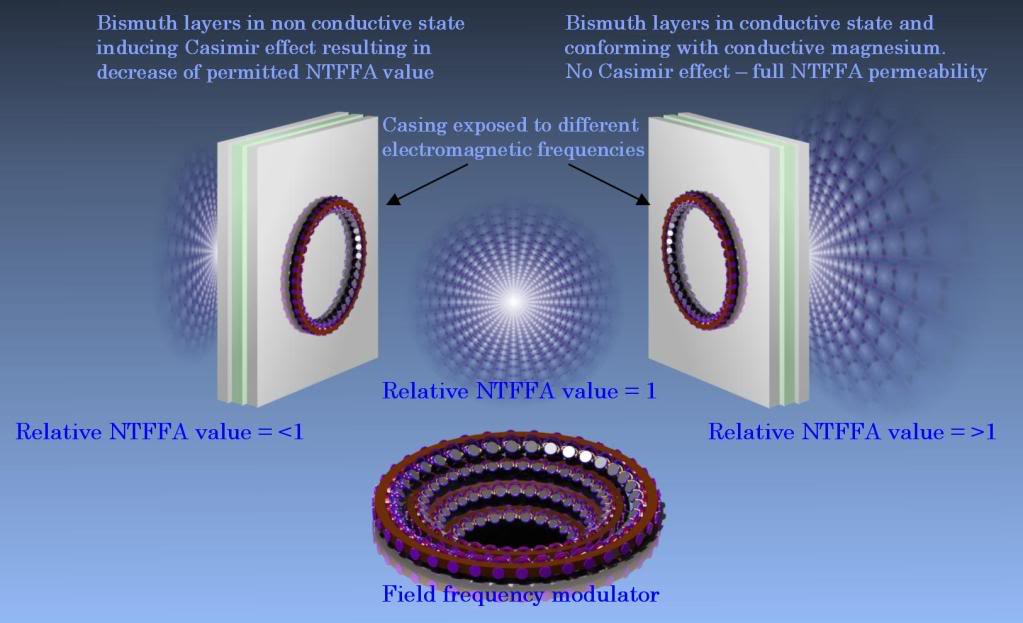 The extra terrestrial engineers seems to have succeeded in creating a casing that combines encapsulation of the NTFFA field with the ability to alter the permeability degree of the NTFFA value.