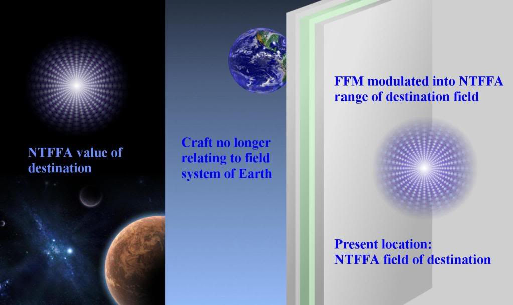 As a result, when modulating a FFM craft into the range of the field system of destination, the craft instantaneously starts to relate to that field system, which means that the only place possible for the craft to exist is in that field system.
