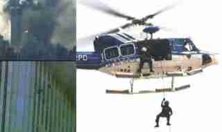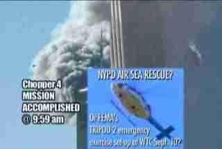 Den här helikoptern däremot utförde en räddningsaktion av någon från det sodra tornets tak. Vem? Den som satte igång explosionerna? Brandmännen hade lite tidigare rapporterat att de nu hade elden i det södra tornet under kontroll!!!