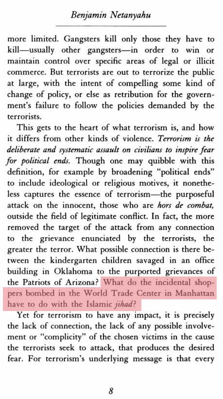 Fighting Terrorism: How Democracies Can Defeat Domestic and International Terrorists av Benjamin Netanyahu från 1995 som ursprunget till planerna att skapa 9/11.