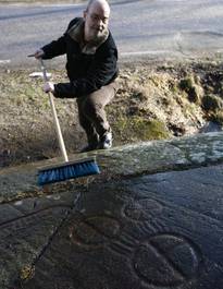 Jan Magnusson berättar att han under modern tid har haft besök av ristningstydare från ”Der Herman Wirths Geshellschaft” som ville se på Tanums världsarv.