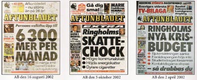 utrymme för klarspråk Men det finns också en stor betydelsefull skillnad. I Tyskland förs en debatt där det talas klarspråk om situationens allvar på ett helt annat sätt än i Sverige. I Sverige är det istället så ordnat, att statsradion tillhandahåller ett särskilt program kallat just Klarspråk. Programmet fullgör funktion som ett slags avledare för det opionstryck som finns. Allehanda invändningar och protester kanaliseras på detta sätt bort från den "riktiga" debatten - den debatt som styrs upp av Det Offentliga Sveriges kungörelser på DN Debatt. Till detta kommer det populistiska tryck som medierna i Sverige utövar på politikerna. Att "avvika" (bara för att ta ett exempel) genom att bara antyda, att de extremt höga svenska sjukskrivningstalen inbegriper ett inte närmare kartlagt fusk ledde länge ofelbart till massmedial bestraffning - dvs till dess att människor i gemen av egen kraft hunnit utveckla insikt om att det är just så det förhåller sig och att det massmediala förhållningssättet därför kommit att framstå som föga trovärdigt för att inte säga direkt enfaldigt. Även journalister tvingas ibland att tänka på hur de kan uppfattas av omgivningen. I Sverige har medierna i en allt högre grad kommit att fullgöra en funktion ägnad att distansera de politiska aktörerna och aktriserna från vad som driver utvecklingen mot finansieringskollaps i den offentliga ekonomin. Medierna förhöll sig inte bara okritiska till de skönmålningar av ekonomin och dess fiktiva reformpotens, som under höstens valrörelse bar fram s-v-mp-alliansen. De deltog själva aktivt i falsarierna. De gjorde det möjligt för landets finansminister att i dubbel mening bli den blindgångare han mer och mer kommit att framstå (för den som ännu kan se). Tidigare var det kommunisterna som var den ständigt övergudande populistiska kraften. Den rollen har numera övertagits av medierna. Därmed har populismen fått en styrka och ett genomslag som aldrig någonsin tidigare. Populismens